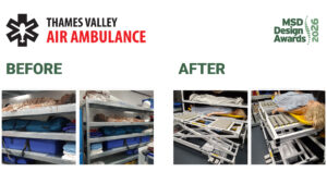 Thames Valley Air Ambulance, the charity serving more than 2 million people across Berkshire, Buckinghamshire and Oxfordshire, wins the Small to Medium Enterprise Recognition Award. Training manikins weighing between 20kg and 40kg had to be handled multiple times a day by two workers, with restricted space making ideal lifting postures difficult, increasing injury risk. Bespoke roller shelving and a height-adjustable roller trolley, designed with equipment manufacturers, health and safety specialists and workers, has substantially reduced MSD risk and made it a one-person task.